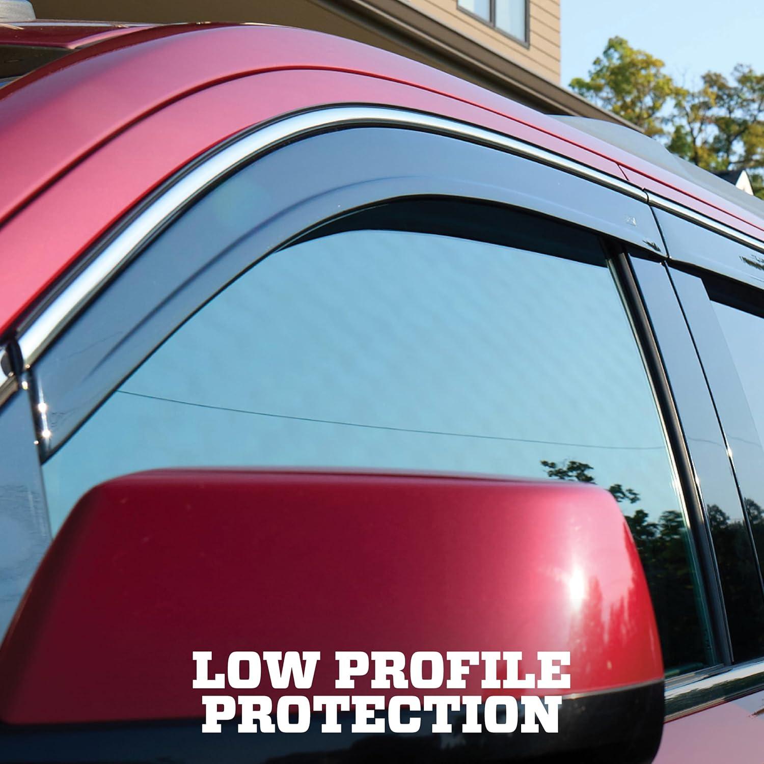 LOW PROFILE PROTECTION — Outfit your vehicle with the lowest profile window deflector on the market for a high-speed, low drag look. Available in smoke w/chrome trim finish.